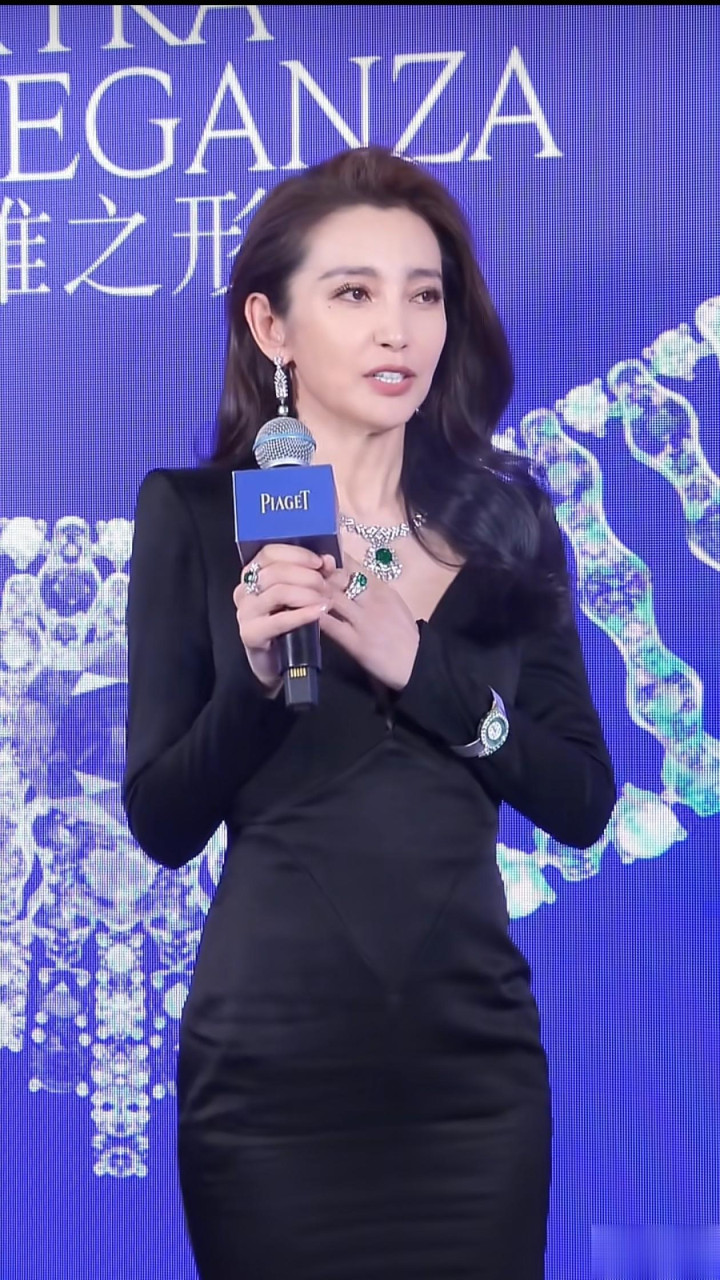 > 52岁李冰冰活动穿搭: 微卷发+黑色深V裙, 身材前凸后翘, 像32岁