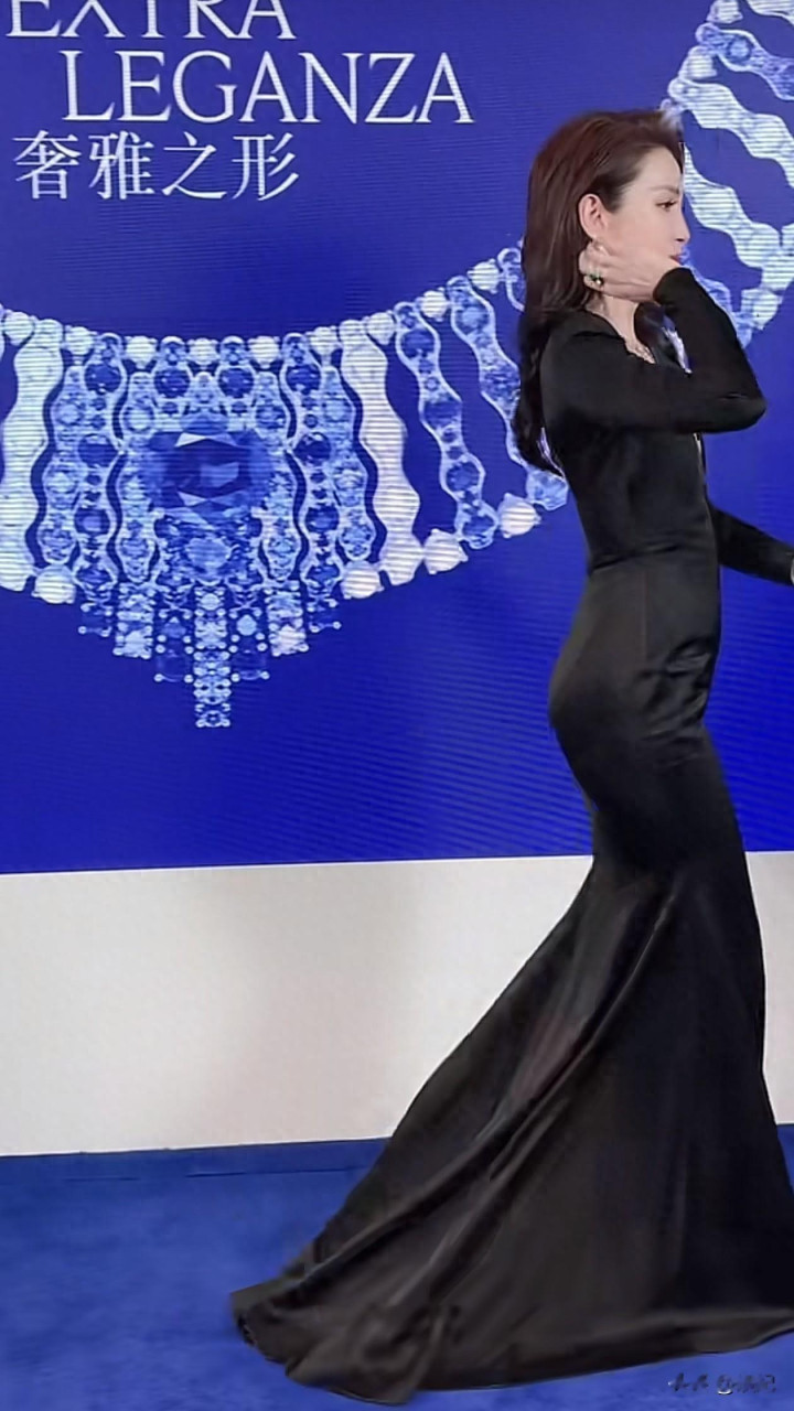 52岁李冰冰活动穿搭: 微卷发+黑色深V裙, 身材前凸后翘, 像32岁